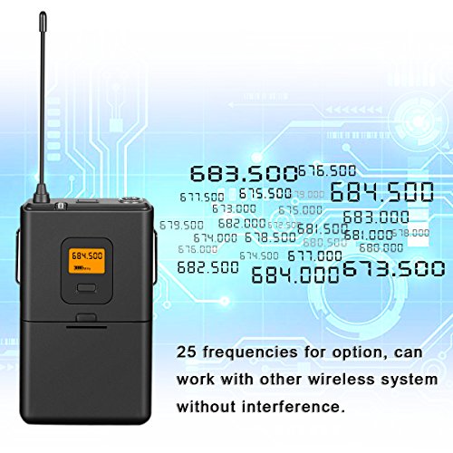 25 SELECTABLE CHANNELS IN THE UHF BAND. Frequency range: 672.5~684.5MHz. No worry of the interference from local radio stations and static. Available for several mics work together without interference. *Note: Lapel Mic K037 doesn't work with laptops.*