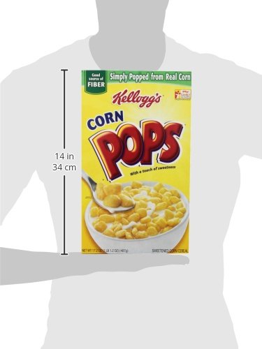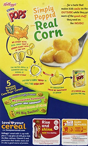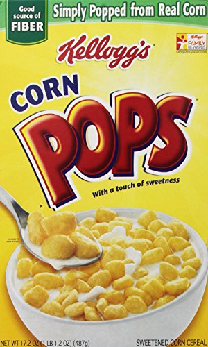 -. Feature : One pack of four, 17.2-ounce boxes of Kellogg's Corn Pops puffed-corn cereal / Approximately fifteen 1-cup (32-gram) servings per box; 60 servings total / 3-grams of fiber per 120-calorie serving; 11 essential vitamins; zero fat / Crunchy puffed-corn cereal is vitamin fortified and contains healthy fiber / Classic and fun breakfast cereal that the whole family will love