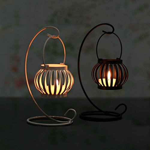 -. Feature : Dimensions: 4.13" x 7.88 inches (Candle not included) / Sturdy but not heavy. Handmade by craftsman. Made of malleable cast iron. Matte, semi-gloss black finish. / Fabulous romantic candleholder creates a romantic ambience with the candles lit,Intended for use with taper / flameless candle. (Generally suitable for most taper candles; the max diameter for the candle can be approximately less than 1.58 inches) / Put off a tender glow with a candle lit inside, offering a nice fairytale flair to your home decor. / Thick glass cups come within pumpkin lanterns. Fit tea lights & small candles.