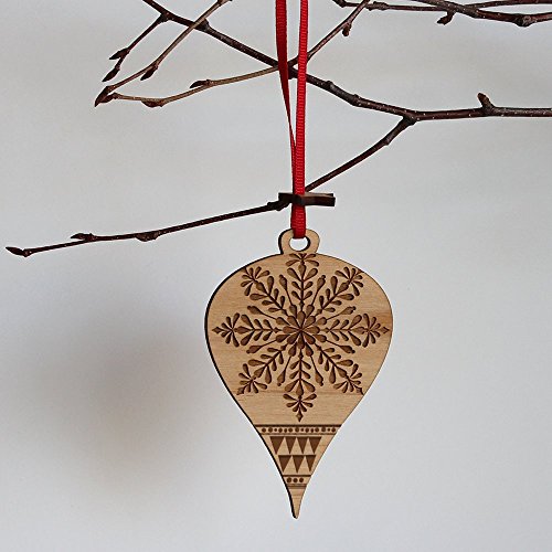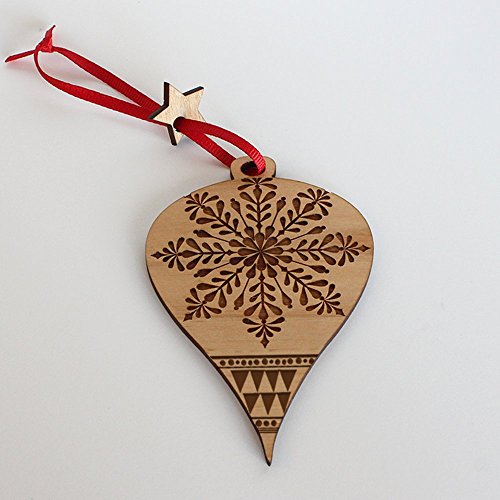 Bella Busta - Christmas Ornament- Christmas tree Ornament- Decorative Ornament - Engraved and lase cut natural alder wood (Snowflake Ornament)