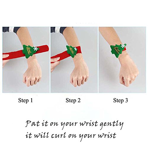 - Christmas Slap Bracelets are made of non-woven fabric and shrapnel,harmless and comfortable to ware. Package include:12 Christmas Slap Bracelets.