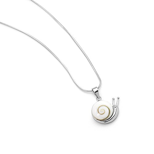 This beautiful Snail necklace would be a wonderful addition to any wardrobe. The included black velvet pouch also makes it the perfect gift for someone special. Made from high quality 925 sterling silver, stamped 925 and natural Shiva Eye Shell. The pendant comes with the sterling silver snake chain 18''