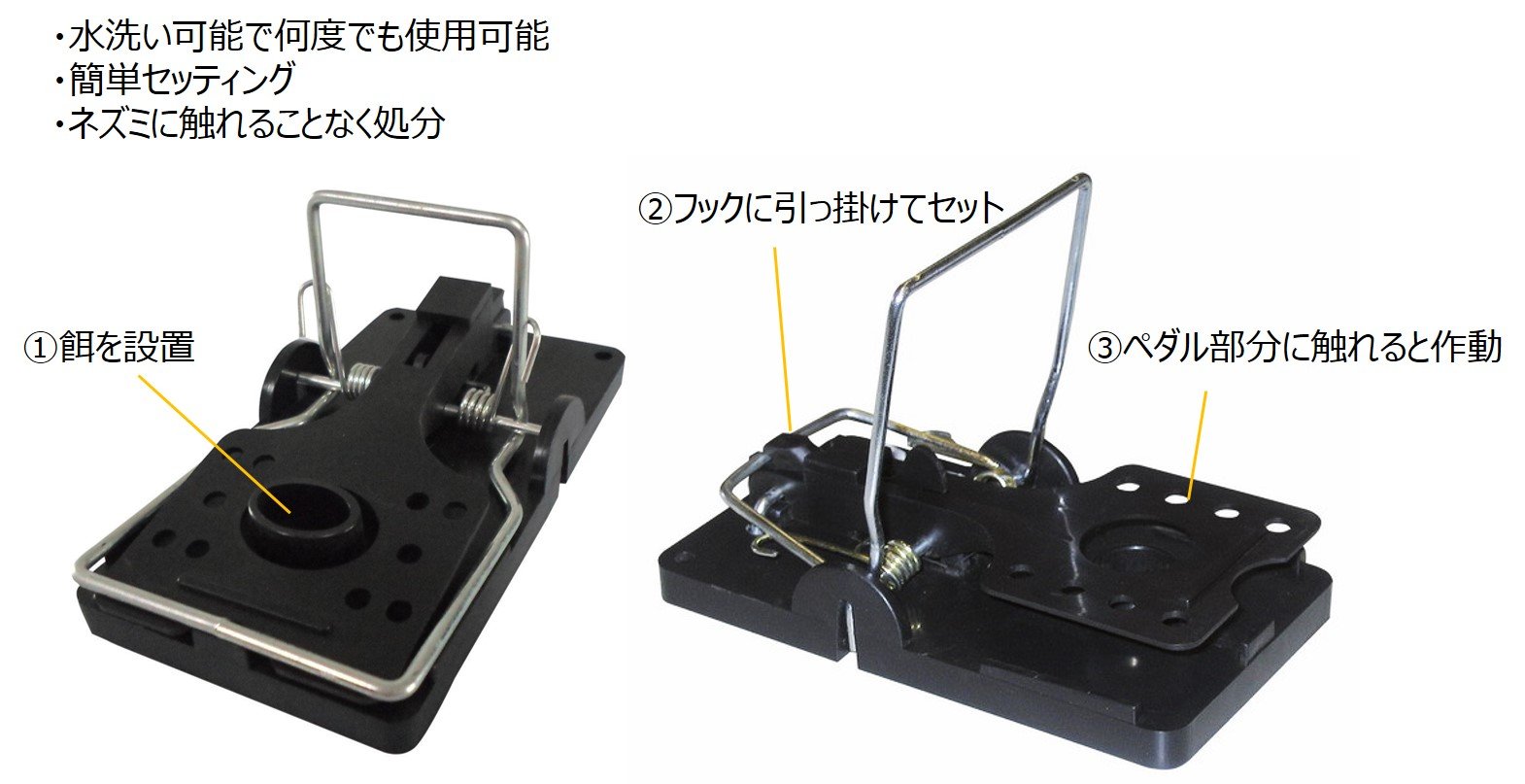③ When you touch the pedal, the spring can operate and catch the mouse.