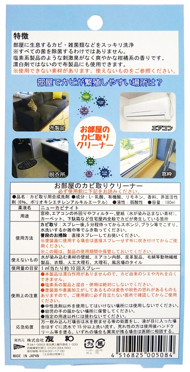 By fermented lactic acid's strong fungicidal action, most of the molds occurring in the home are removed by 98% or more in about 10 minutes.
