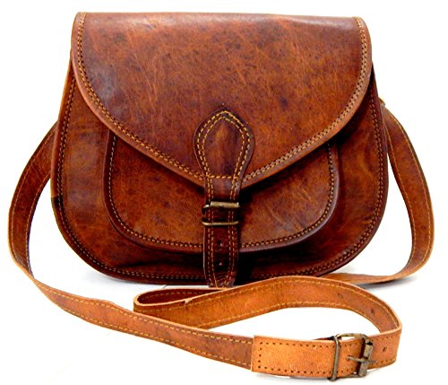 -. Title : Women Vintage Style Genuine Brown Leather Cross Body Shoulder Bag Handmade Purse
