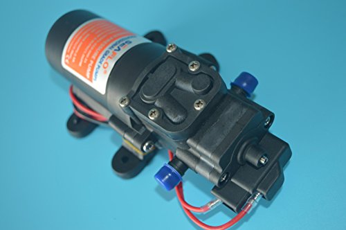 -. Feature : On-demand, automatic water pump for small boats, campers, and / Built-in 40 PSI pressure switch for automatic stop/start / Self-P.R.Iming--allows it to be mounted above tank; able to run dry / Built-in thermal protector; 3/8-inch hose barb ports / 1.0 Gallons per minute (3.8 Litres per minute)