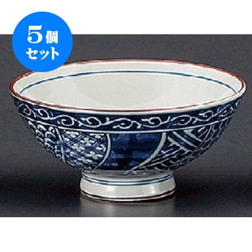 원본상품명: 5個セット 飯碗(磁器) 古染七?祥瑞大平茶碗 [127 x 60mm] 和食器 料亭 旅館 ?食店 業務用