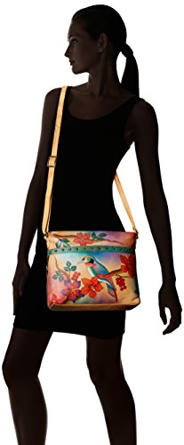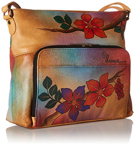 Top zip entry to two large main compartments. Easy access to central compartment with double magnetic snap closure. Rear slip-in pocket. Inside two zippered wall pockets. Slip in wall to wall pocket, cell and multipurpose pockets. Short double rope handle with 9.5 inch drop. Detachable strap with adjustable drop length 11 inch – 24 5 inch 14 inch x 8.25 inch x 4 inch