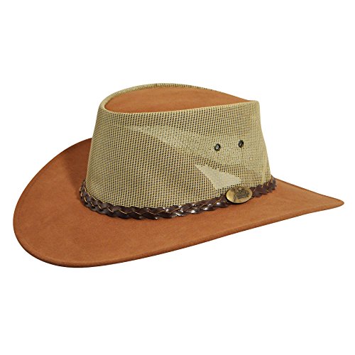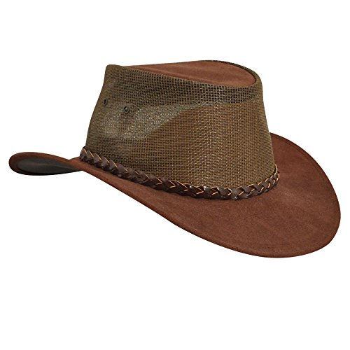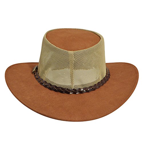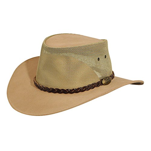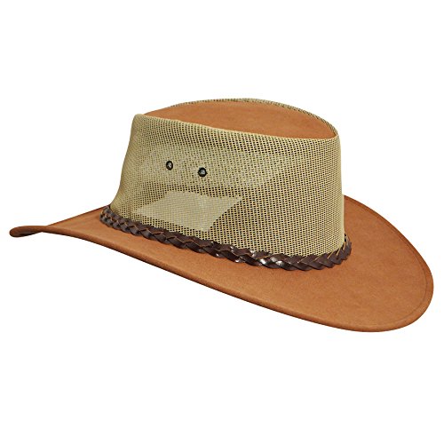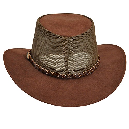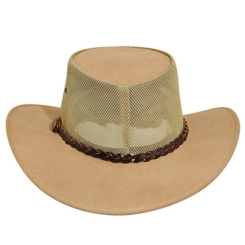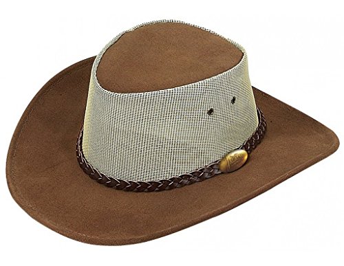 Studio : JACARU Publisher : JACARU Binding : Apparel Product Description The summer is calling to you, so go enjoy it with Jacaru This hat is made for the breeze with durable leather construction and a PVS mesh crown, so you can enjoy the breeze. Hat's top is brushed for suede texturing, and features an interior leather sweatband. 0