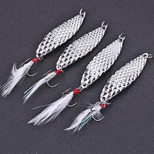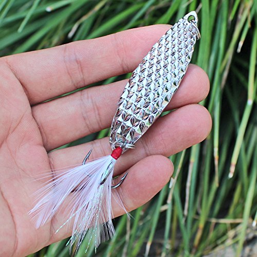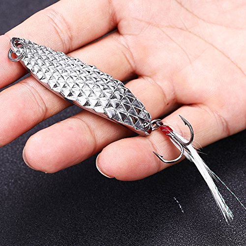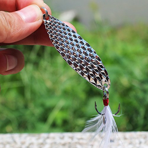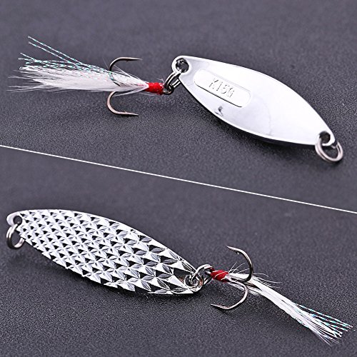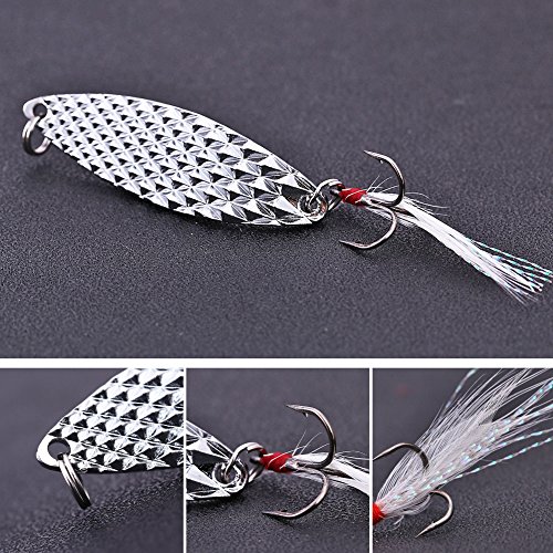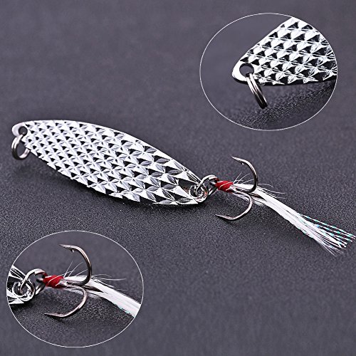 Sougayilang Spoons Hard Fishing Lures Treble Hooks Salmon Bass Metal Fishing Lure Baits Pack of 5pcs
