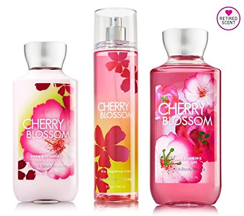 -. Feature : Bath & Body Works Cherry Blossom Trio ~ Lot of 3: OLD LABELED Shower Gel, Body Lotion and Fragrance Mist / Top Notes: Dewy Watermelon, Green Lush Accord, Wisteria Petal, Red Plum Mid Notes: Cherry Blossom, Sheer Freesia Dry Notes: Soft Musk, Sandalwood, Heliotrope An Online Exclusive Fragrance / 1 Shower Gel 10 fl oz Wash your way to softer, cleaner skin with a rich, bubbly lather bursting with fragrance. Moisturizing Aloe Vera and Vitamin E combine with skin-loving Shea Butter in our most irresistible, beautifully fragranced formula! / 1 Fragrance Mist 8 oz/ 237 ml Lavishly splash or lightly sP.R.Itz your favorite fragrance, either way you'll fall in love at first mist! Our carefully crafted bottle and sophisticated pump delivers great coverage while conditioning aloe mist nourishes skin for the lightest, most refreshing way to fragrance! / 1 Body Lotion 8 fl oz / 236 mL Our hydrating, yet non-greasy, lotion leaves skin incredibly soft, smooth and nourished after just one use! Fortified with powerful ingredients like super conditioning Shea Butter, fast absorbing Jojoba Oil, and protective Vitamin E, our top rated formula is the ultimate total body moisturizer!