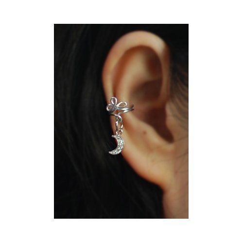 -. Title : 20 gauge Ear Cuff with Cubic moon , Ear Jacket, Ear Wrap / Use the right ear.