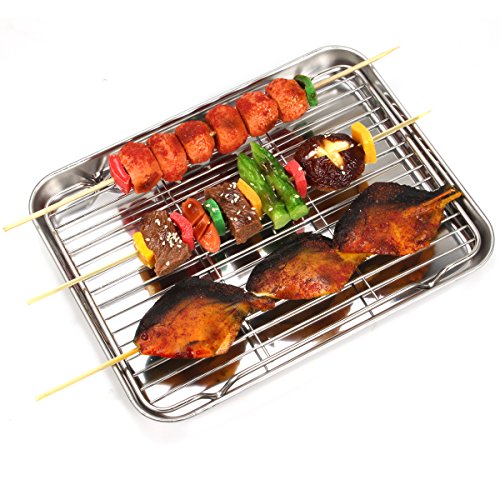 - 【Healthful】The baking pan are made of high quality pure 430 stainless steel and The baking rack are high quality pure 304 stainless steel without chemical coating or any other materials, Rust resistant and durable for many years.