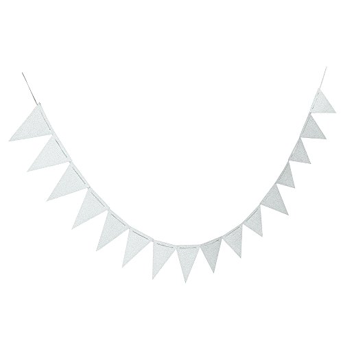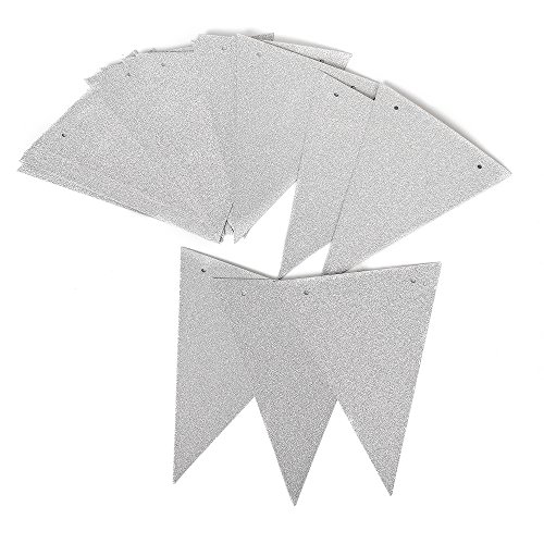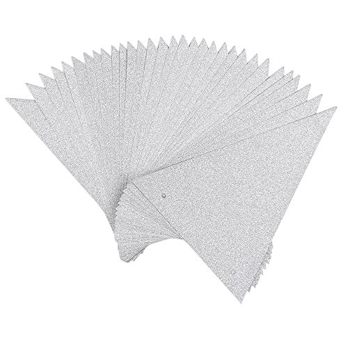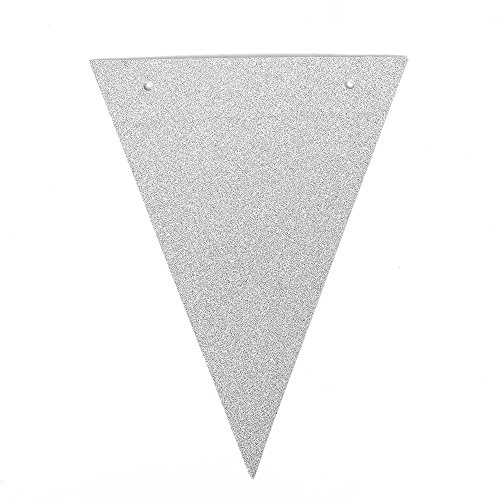 ZOOYOO 20 Feet Silver Glitter Pennant Banner, Paper Triangle Flags Bunting for Baby Birthday Party, Wedding Decor, Baby Shower, 30pcs Flags, Pack of 1(One 20 Feet or Two 10 Feet)