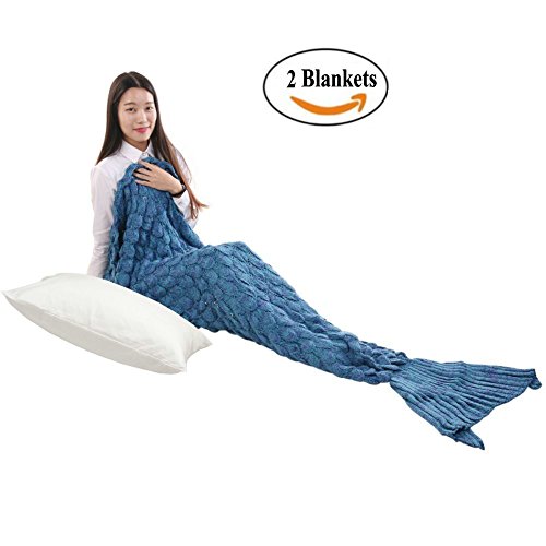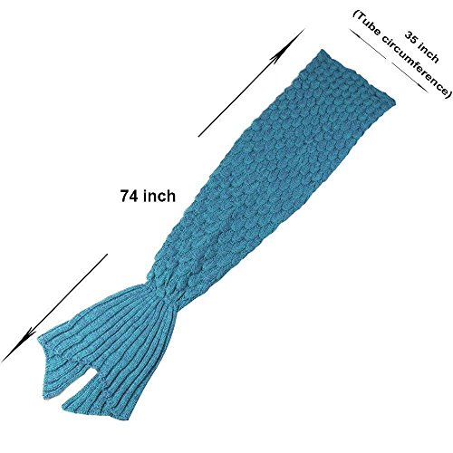 Handcrafted, exquisite and elegant, ideal gifts for girls and women. Super cozy woolen yarn blanket for Children and adult, gorgeously sewn mermaid tail Adorable blanket tail just like a sleeping bag to climb in, wide openings . Great for Story Time, Reading, Staying Warm at Night, Lounging with Family, Movie Nights, Sleepovers, Camping, Car Travel, Family Trips and as a kid's toy for fun. A creative and cuddly way to enhance your living room or bedroom décor. The bright color and beautiful cable knitted pattern along with the cute tail shape this blanket has, will make this cutie not only a wonderful addition, but the sea queen of your comforter blankets as well. Package details: lovely & good quality mermaid blankets for adults or teens.
