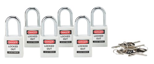 -. Title : Brady 118950 White, Brady Keyed Alike Safety PadLock (6 Locks)