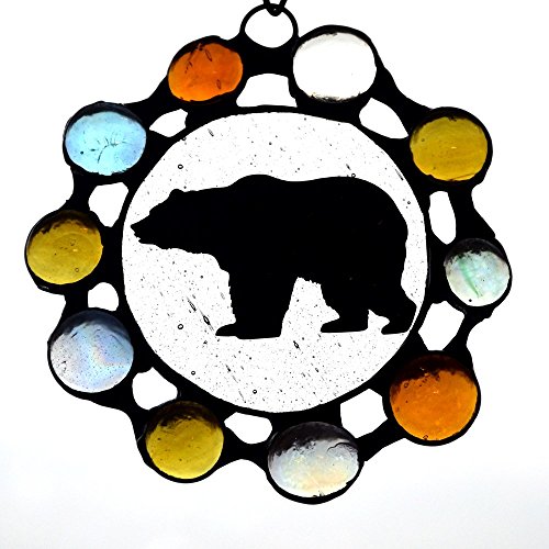 -. Title : Stained Glass Bear Ornament with Marble Glass Border, Suncatcher