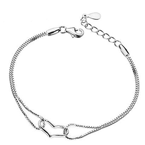 - Title : UZZO Valentine Day Gift- Elegant And Decorative Women Jewelry Plated Sterling Silver Heart Love Bracelet Chain White Gold Plated Silver Bracelet Fashion Cuff Bangle
