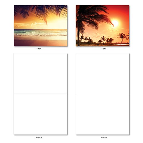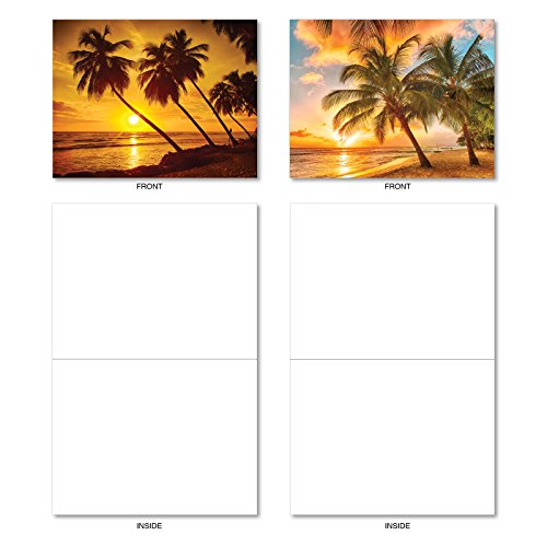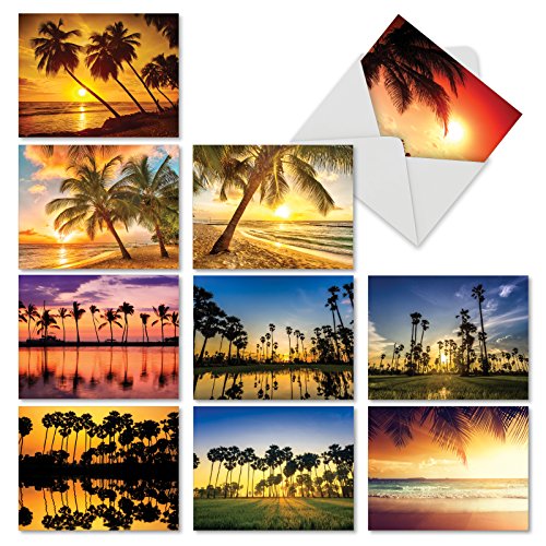 M6457OCB Palm Beaches: 10 Assorted Blank All-Occasion Note Cards Featuring Inspirational and Relaxing Images of Tropical Palm Trees Silhouetted Against the Setting Sun, w/White Envelopes.