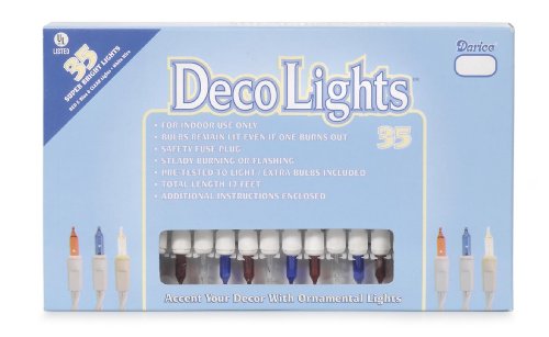 Darice LT35-10 Red, White and Clear 35-Light Bulb Light Set with White Cord for Indoor Use Only