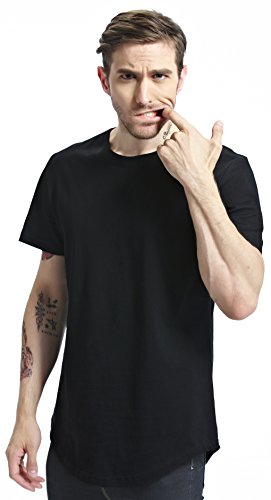 -. Title : Bertte Mens Hipster Hip Hop Basic Longline Curved Hem Crewneck Short Sleeve T-shirt