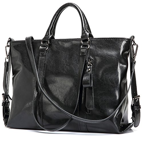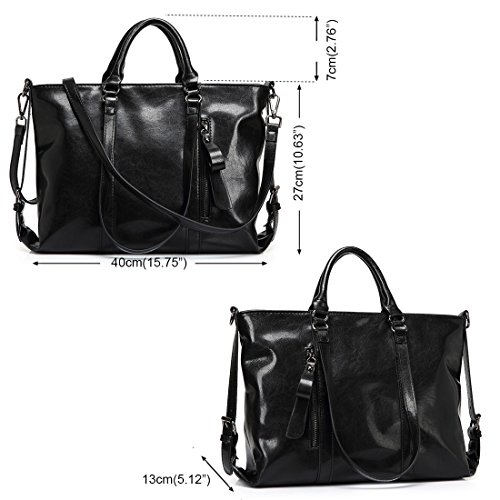 Materials: Oil wax leather and Polyester. Size:Lenght 15.75',wide 5.12',height 10.63' Usage:Leather Tote Bags for Women/Fashion Handbags/Big Crossbody Bags/Business tote bags Color:Black,Orange,Wine Red,Dark Blue,Light Brown and Dark Brown. Style:Fashion and Business and Casual Style. Closure:Zipper Top Closure. Occasions: Dating, Working Place, Shopping, Traveling, Meeting.