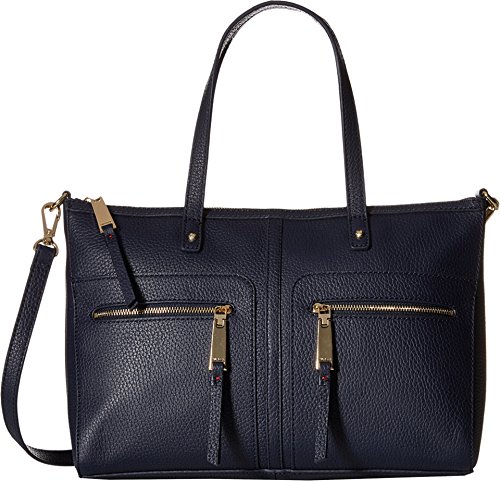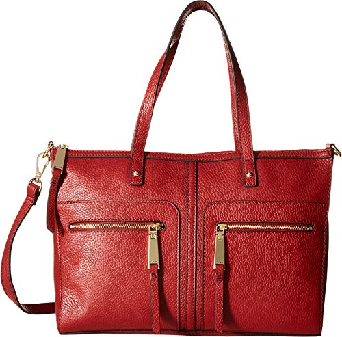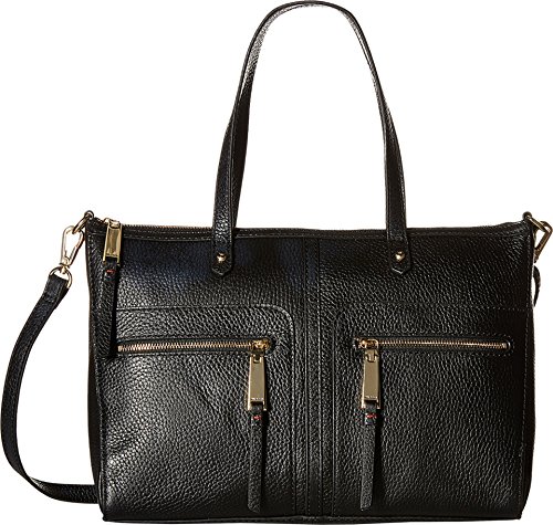 Top zip closure. Dual flat carry handles. Removable crossbody strap. Exterior boasts two zip pockets and metal hardware. Flat bottom. Lined interior features a back wall zip pocket. Imported.