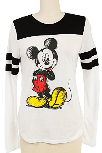 Disney Long Sleeve Jersey Style Tee Mickey Graphic (Small, White)
