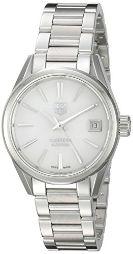 -. Binding : Watch -. Brand : TAG Heuer -. Color : White -. Department : womens -. EAN : 7612533115057 -. Feature : Stainless steel case with a stainless steel bracelet; fixed stainless steel bezel / White mother of pearl dial with silver-tone hands and index hour markers; Dial type: analog; Luminescent hands and markers; Date display at the 3 o'clock position / Swiss-automatic Movement / Case Diameter: 28mm / Water Resistant To 100m (330ft): In General, Suitable for Swimming and Snorkeling, but not Diving -. Label : TAG Heuer -. Manufacturer : TAG Heuer -. Model : WAR2411.BA0776 -. MPN : WAR2411.BA0776 -. PartNumber : WAR2411.BA0776 -. ProductGroup : Watch -. ProductTypeName : WATCH -. Publisher : TAG Heuer -. Studio : TAG Heuer -. Title : TAG Heuer Women's 'Carrera' Swiss Automatic Stainless Steel Dress Watch, Color:Silver-Toned (Model: WAR2411.BA0776)