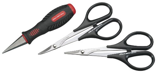 This is the Duratrax Body Reamer and two Body Scissors. FEATURES: Super sharp cutting tip cuts and enlarges holes in polycarbonate, ABS, balsa and other hobby materials Fluted blade removes debris while cut.Feature