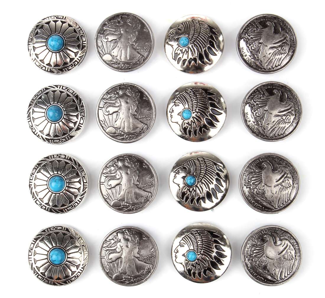 【16個セット】コンチョ コイン 飾り ボタン 豪華 レザー クラフト 用 金具 セット 鷲 イエス インディアン 花 lvt-a08【1~2日発送】