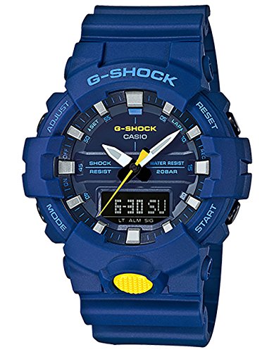 Casio G-Shock Mid-Size Analog Digital 200M Super illuminator Watch. At the touch of a button, the display can be brightly illuminated in a fashionable color. Shock-resistant construction protects against impact and vibration. A second location time can be set and called up. Ideal if you frequently make overseas calls. Stopwatch function - 1/100 sec. - 24 hours. The countdown timer emits a signal after a preset period of time has elapsed. The watch has a maximum timing capacity of 100 minutes and can be set in second-long cycles. 5 Daily Alarms- the daily alarm reminds you about recurring events with an acoustic signal at the time you have set. This model has 5 independent alarms for flexible reminders of important appointments. The button tones for using the mode button can be turned off. This means that the watch no longer beeps when switching from one function to another. Preset alarm or countdown timers remain active when the button tones are deactivated. Hand moving Feature- With a push of a button, hands are moving and permit a free visibility of functions like stopwatch or date. 12/24-hour timekeeping- Times can be displayed in either a 12-hour or 24-hour format. Automatic calendar- Once set, the automatic calendar always displays the correct date.