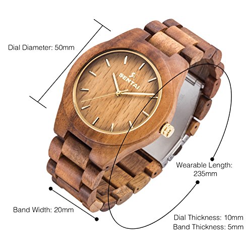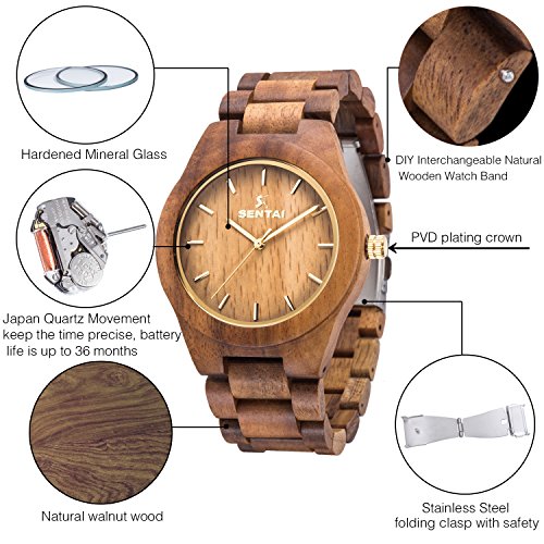 Handmade Natural Wooden Watch: Sentai men's wrist watch are special designed for people with allergies and sensitive skin, Non-toxic Hypo-allergenic. Handmade, maybe the natural colors of them are slightly different from each other and color difference.
