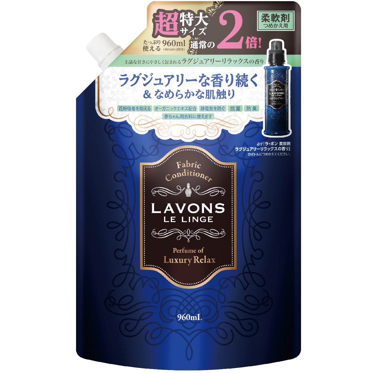 商品紹介 洗濯中から着用時まで香水のようなラグジュアリーな香りが持続。 天然由来の香料を配合。衣類を柔らかく滑らかに仕上げるので、赤ちゃん用衣類にも使えます。 心落ち着く、上品な甘さにやさしく包まれる香り【ラグジュアリーリラックスの香り】お得な詰替え大容量タイプ。 使用上の注意 ●用途以外に使用しない。●子供の手に届くところに置かない。●原液が直接衣料にかからないようにする。●直射日光の当たらないところで保管する。●柔軟剤の自動投入口を使う場合は、洗濯機の取扱説明書をお読みください。