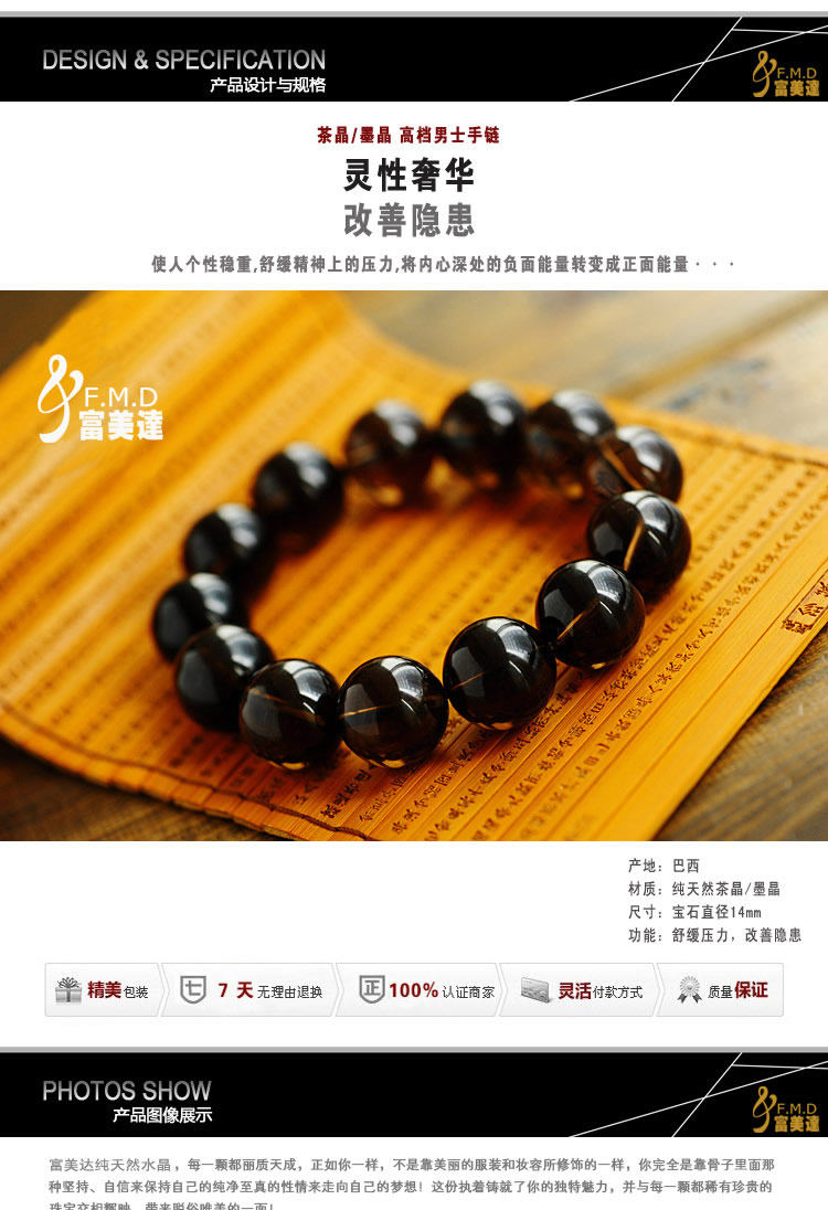 High quality men Bracelet/For gift顶级纯净体纯天然茶晶/墨晶手链/男士/高档手链/保健转运