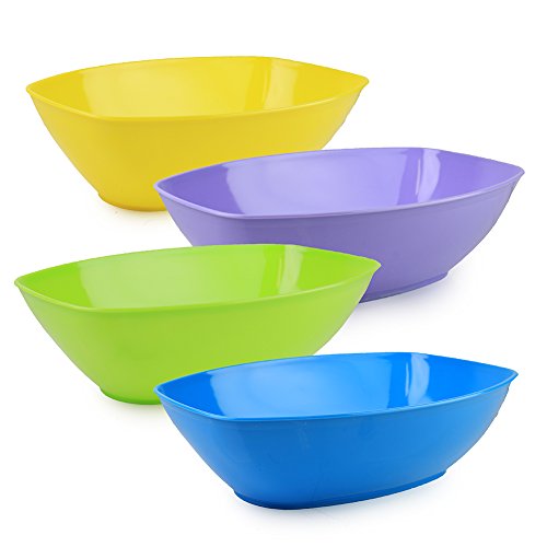 Set of 4 - 96 Oz. Oval Plastic Luau Serving Bowls, Party Snack or Salad Bowl, Assorted Vibrant Colors