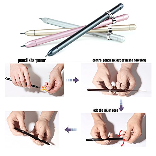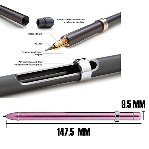 ❤Aircraft Grade Aluminium with anodised surface finish.HB lead.premium neodymium magnet control ink out or in.1 pencil sharpener 1 pencil with 12 lead refills