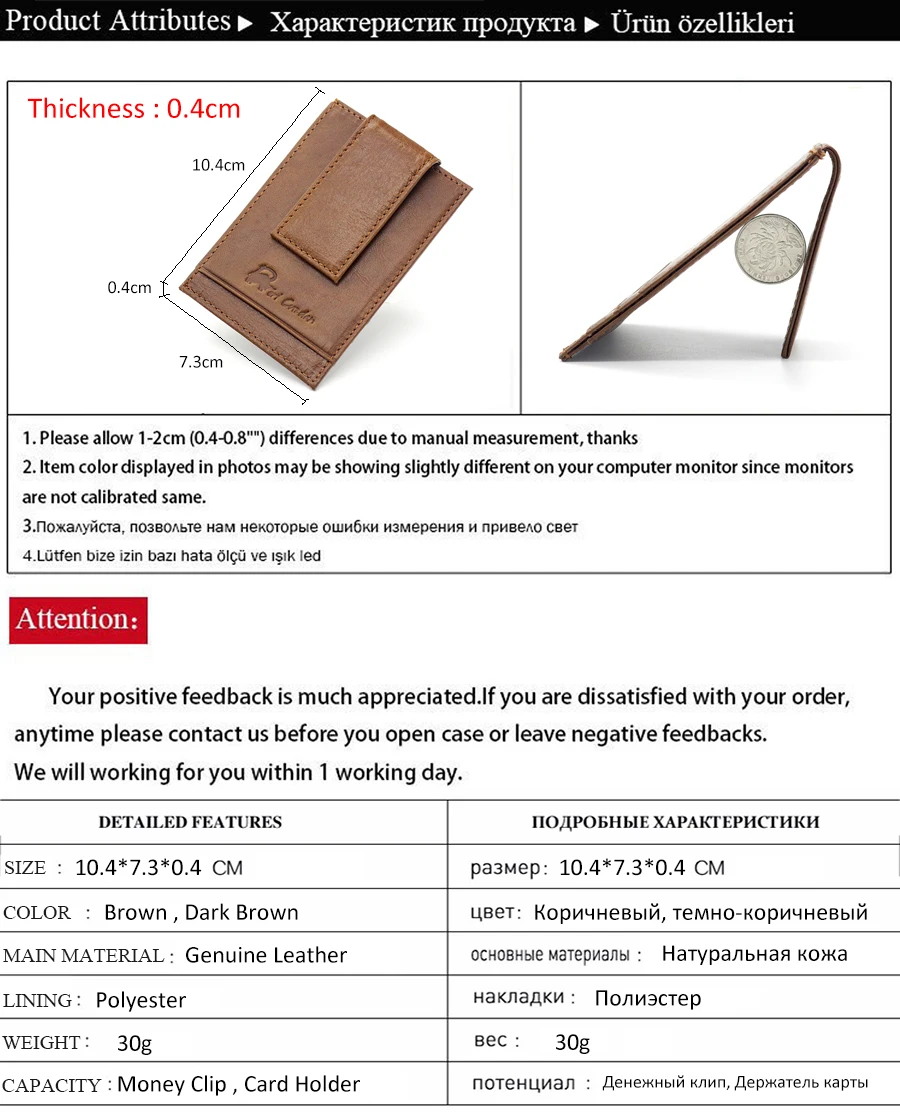 Cortical Characteristics:Genuine Leather Men Money Clips
