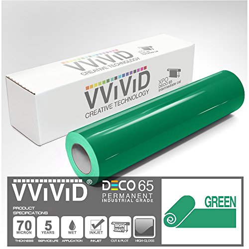 VViViD Dark Green Gloss 11.8" x 84" (7ft) DECO65 Permanent Adhesive Craft Vinyl for Cricut, Silhouette & Cameo