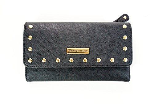 TOMMY HILFIGER BLACK SAFFIANO STUDS CONTINENTAL CHECKBOOK CLUTCH WALLET