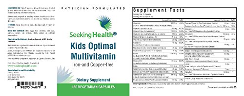 -. Binding : Health and Beauty -. Brand : Seeking Health -. EAN : 0798295548795 -. Feature : Provides bioavailable forms of vitamins: active forms of folate, B12, riboflavin and B6 and mixed nutrient sources. / Provides easily tolerated, well-absorbed mineral forms in optimal proportions. / Includes trace minerals, TMG, lutein, and shilajit for additional support. / Free of common allergens. Does not contain artificial flavors, colors or preservatives. / IMPORTANT: Kid's Optimal Multivitamin is manufactured for and sold exclusively by Seeking Health on Amazon.com. We DO NOT recommend purchasing this product from any supplier other than Seeking Health on Amazon. -. IsAdultProduct : 0 -. Label : Seeking Health -. Manufacturer : Seeking Health -. MPN : KOPMULTI-180-CAPS -. PartNumber : KOPMULTI-180-CAPS -. ProductGroup : Health and Beauty -. ProductTypeName : HEALTH_PERSONAL_CARE -. Publisher : Seeking Health -. Studio : Seeking Health -. Title : Kid's Optimal Multivitamin | 180 Vegetarian Capsules | Physician-Formulated | Seeking Health -. UPC : 798295548795