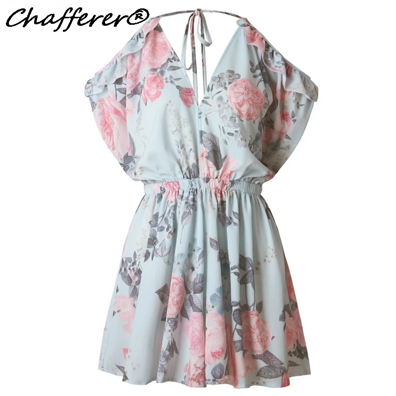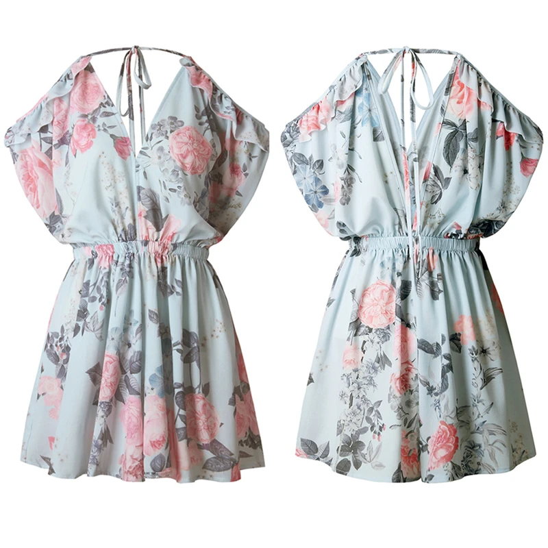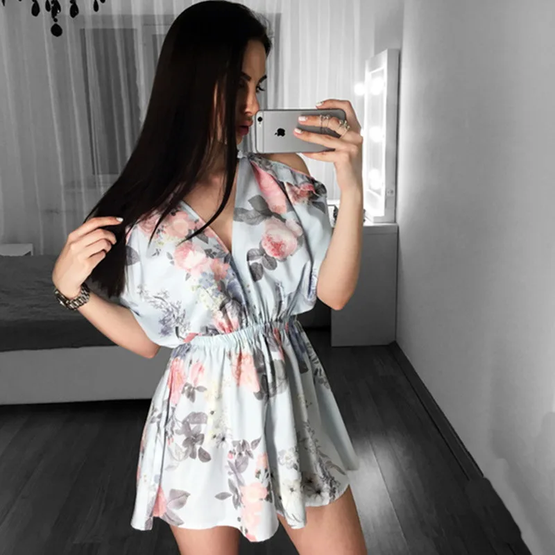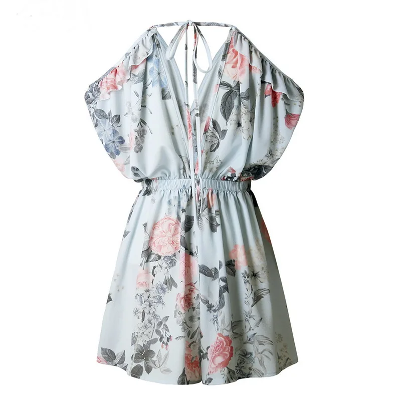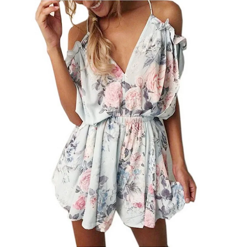 Kind: Sexy Off Shoulder Floral Print Pleated Playsuits