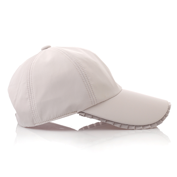 모자 챙 부분의 골테잎으로 플리츠 주름을 잡아서 유니크하게 포인트를 준 제품