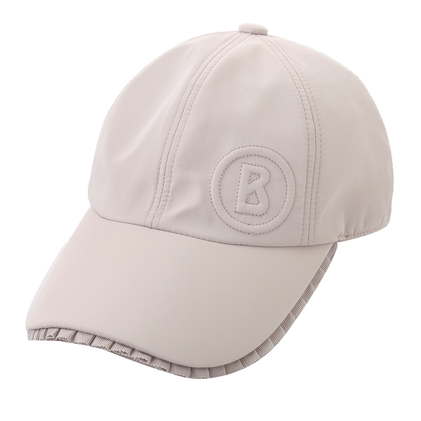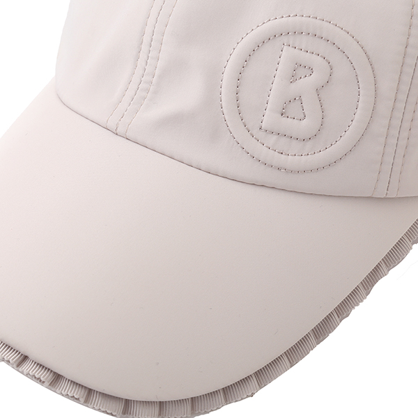 메모리 소재의 여성 롱 베스트 소재를 함께 사용한 육각캡 B로고에 엠보를 넣어 볼륨감 있게 하여 여성스럽게 로고를 표현