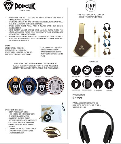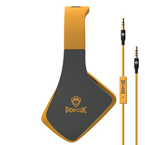 PopClik JUMP! Pro Headphones in Yellow 40 mm Neodymium Magnet Driver Over the Ear 16 Ohms Impedance