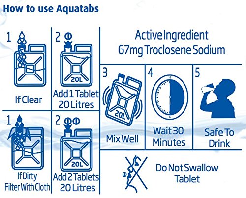 Aquatabs are effervescent tablets which kill microorganisms in water to prevent cholera, typhoid, dysentery and other water borne diseases. Clean drinking water is ready in 30 mins.