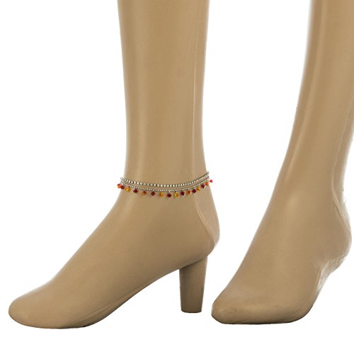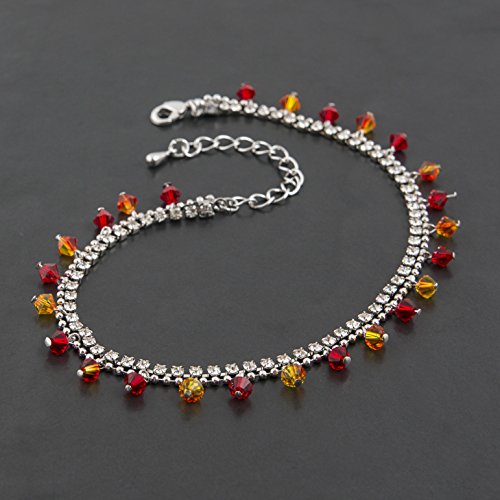 - Feature : Weight: 6 g / Anklet length: 8.5'' - 10.5'' (with 2'' extension chain) / Made from Swarovski Crystal, CZ, Rhodium Plated Brass (Nickel Free) / Swarovski Crystal Color Name: Sun and Light Siam / Package: Black velvet jewelry pouch
