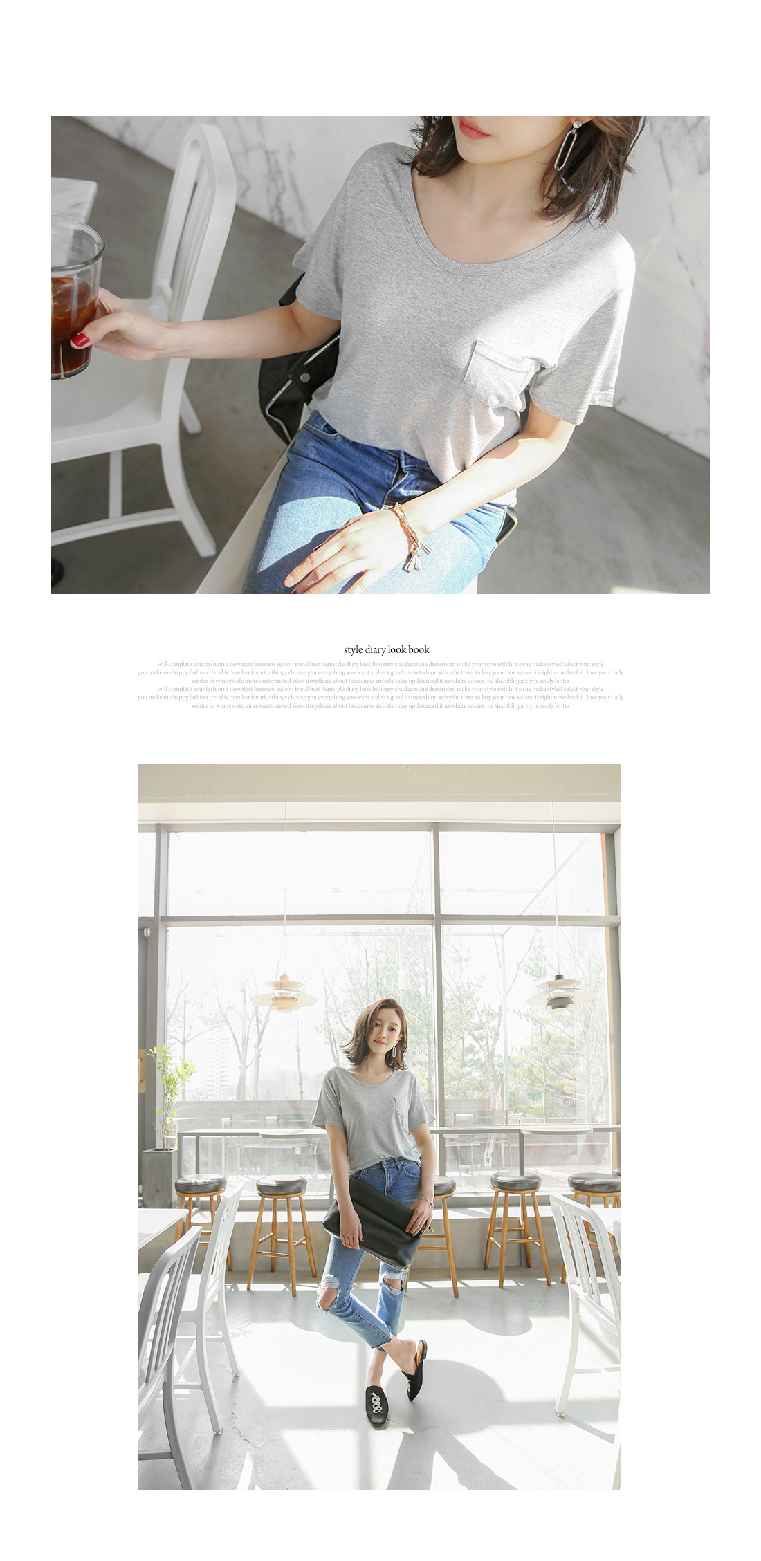 베이직한 디자인으로 다양한 코디룩을 완성해드리는티셔츠 아이템이예요~^^라운드넥과 적당한 길이감으로다양한 레이어드룩을 연출해드려요~베이직한 디자인으로 스커트,팬츠 등다양한 아이템들과 데일리한 코디룩을완성해드리는 티셔츠랍니다~적당한 두께감으로 계절에 구애없이즐길 수 있는 티셔츠 아이템이예요~