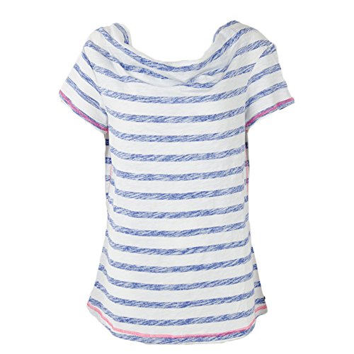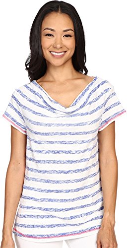 Nautical inspired stripe design. Cowl neckline. Short sleeve construction. Straight hemline. 80% cotton, 20% linen. Hand wash cold, dry flat. Imported.