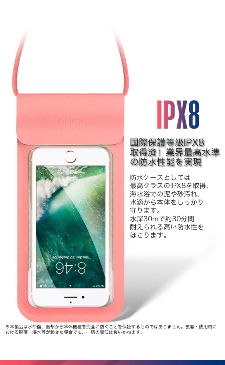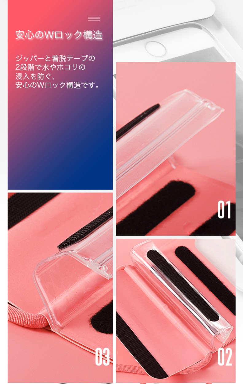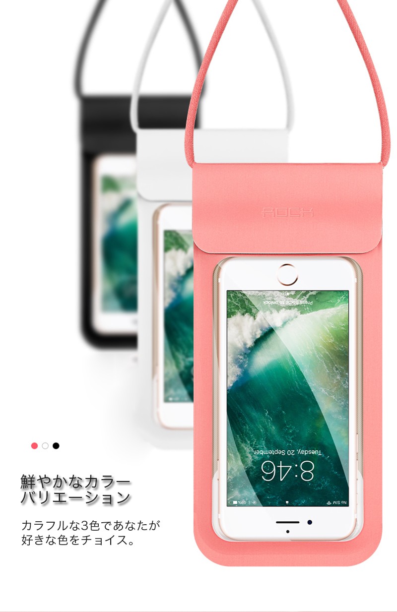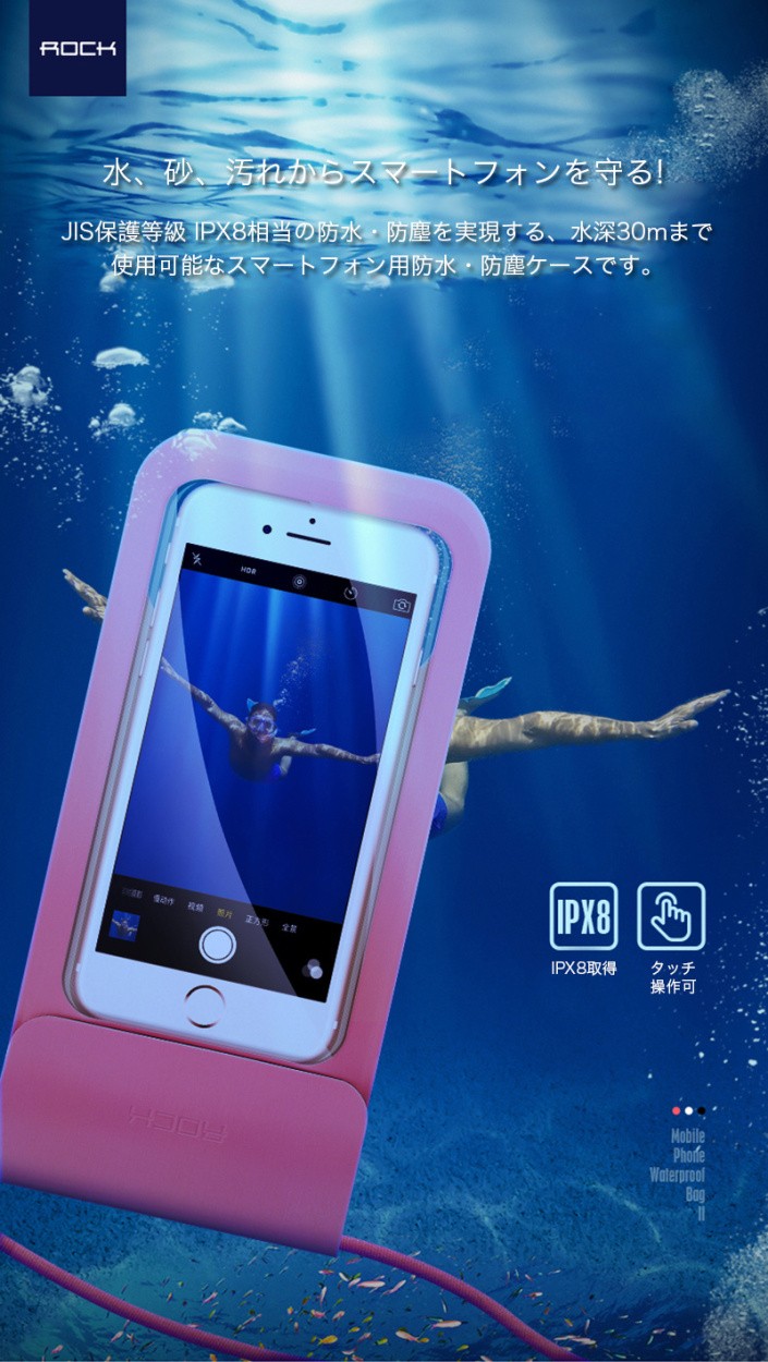 ★「対応機種」iPhoneXS(アイフォンXS)、iPhoneXS Max(アイフォンXSマックス)、iPhoneXR(アイフォンXR)、iPhoneX(アイフォンX)、iPhone8(アイホン8)、iPhone8 Plus(アイフォン8 マックス)、iPhone7(アイフォン7)、iPhone7 Plus(アイフォン7 マックス)、iPhone6s(アイフォン6s)、iPhone6s Plus(アイフォン6s マックス)、iPhone6(アイフォン6)、iPhone6 Plus(アイフォン6 マックス)、iPhoneSE(アイフォンSE)、iPhone5s(アイフォン5s)、iPhone5(アイフォン5)、、Xperia(エクスペイリア)、Galaxy(ギャラクシー)など 6インチ以下の機種対応可能★「カラー」ブラック(黒)、ホワイト(白)、ピンク★「商品特徴」防水と防塵の国際規格であるIP試験で最高の等級を表す「IPX8」を取得、最大30mまで水中での使用が可能です。ジッパーと着脱テープの2段階で水やホコリの浸入を防ぐ、安心のWロック構造です。海、砂浜、プール、雪山など色々な場所で使えます。★「キーワード」iPhoneシリーズ、Galaxyシリーズ、Xperiaシリーズなど6インチ以下機種対応可能 防水ケース IPX8防水規格認証 水深30m TPU 防水 防塵 画面操作 撮影通話OK